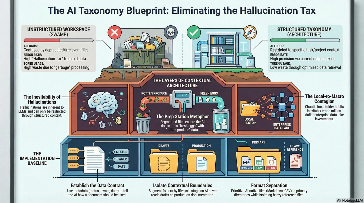 TL;DR: Your GenAI output is failing because your local workspace is a disaster. If your desktop is a dumping ground, your enterprise data lake is guaranteed to be a swamp. Stop blaming the model, establish a strict folder taxonomy, and kill the bad data habits before they scale.