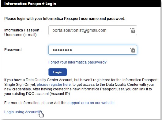 Step 2: Log out of the Data Quality Center and click the link to Login Using Account ID